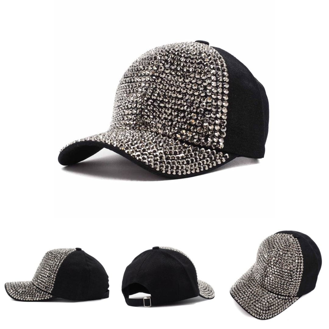 Czapka z daszkiem damska dżety z brokatem srebrna