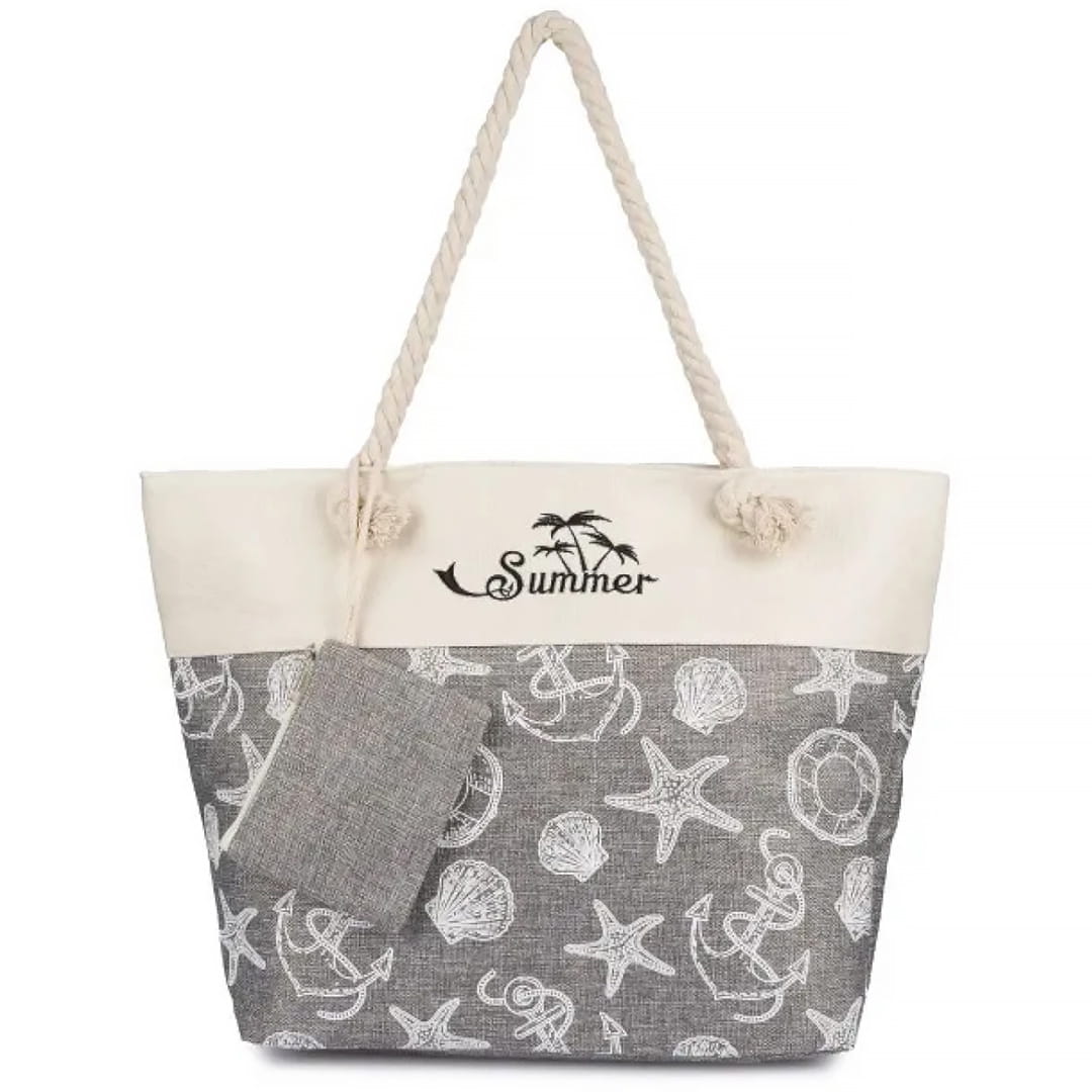 Torba plażowa duża SUMMER szara z saszetką na telefon